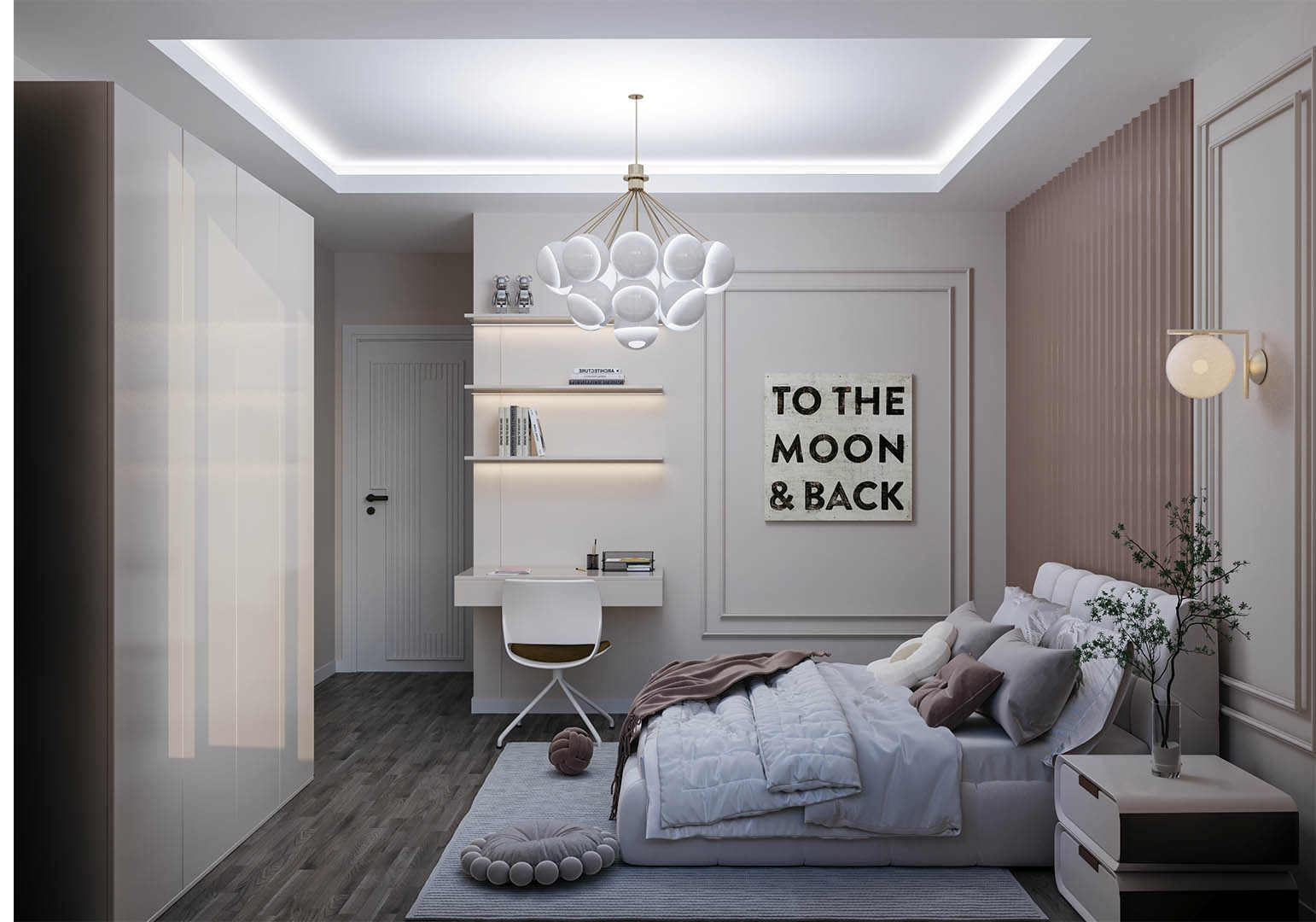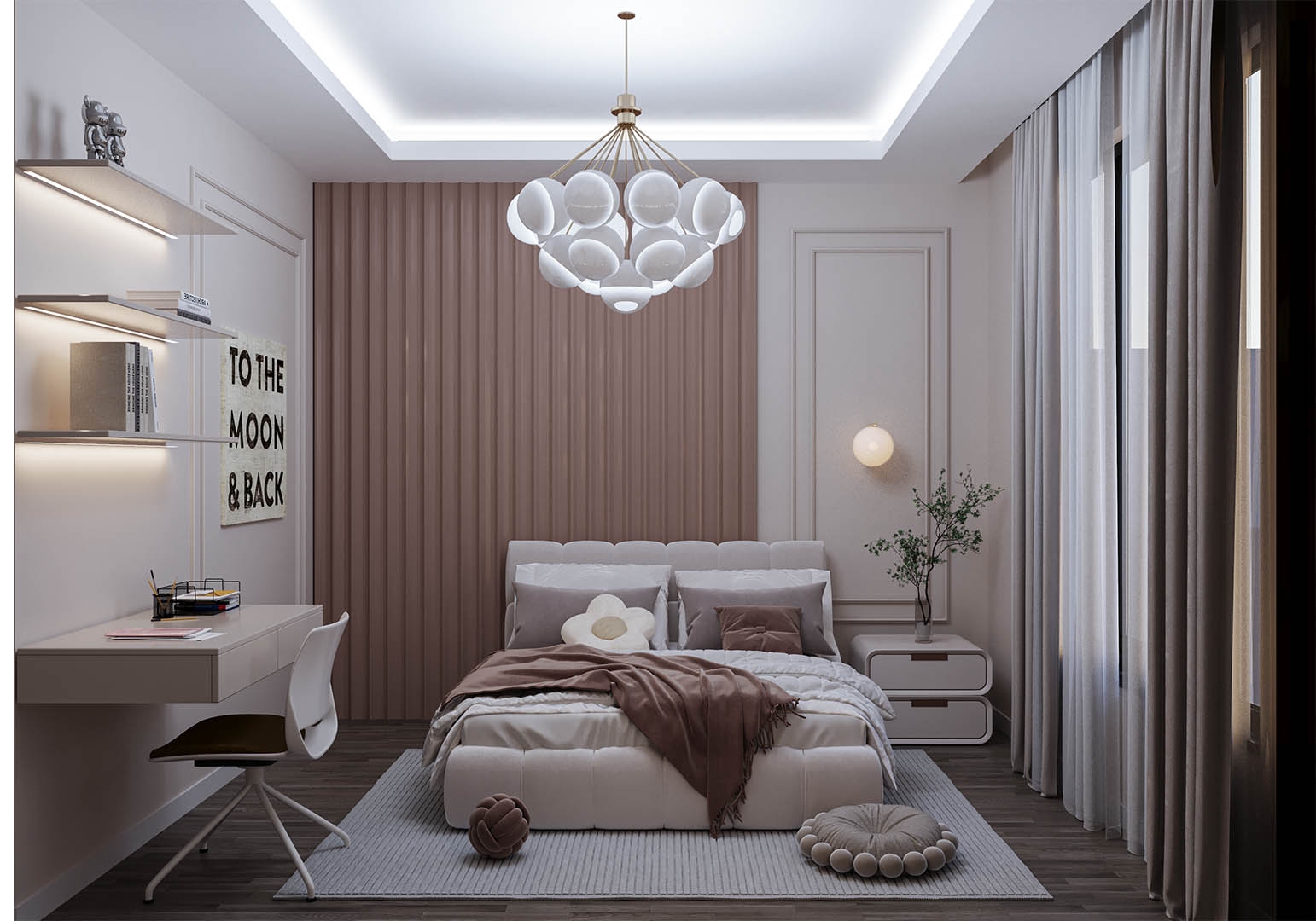 sunuyor. Ebeveyn yatak odasında ise özel bir giyinme odası ve çamaşır odası